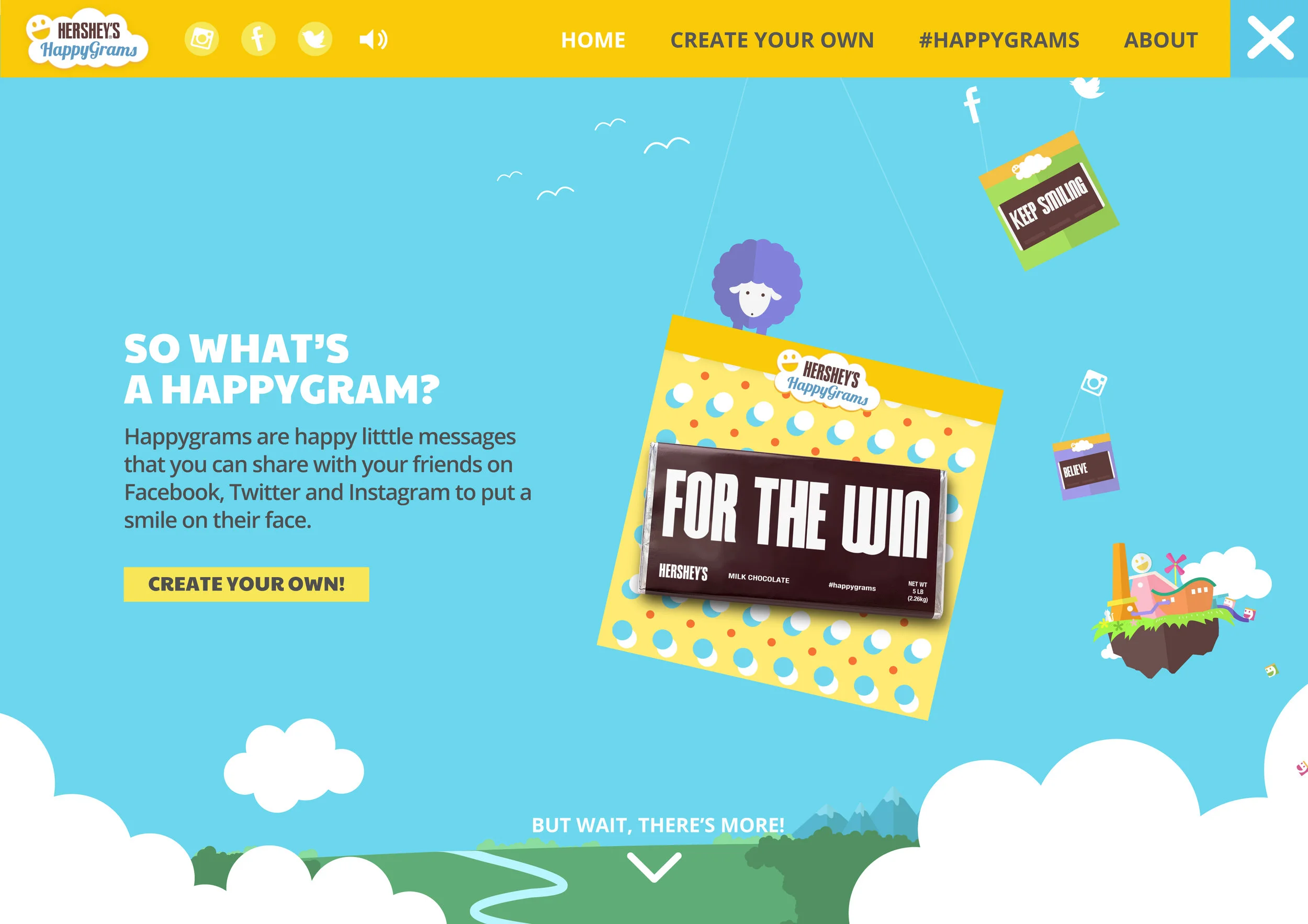 We even created a Happygram maker for them to make their own and share with friends needing a smile. We then selected the best Happygrams and put them on real Hershey’s chocolate bars – bringing more reasons to smile from the virtual to the real world.
